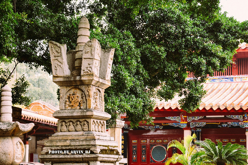 跨过山门就到了拜亭,站在这里,可以看到拔地而起的东西两塔和宽敞明亮的东西两廊对称地排列在两旁。东西两塔是大开元寺较有名的景点,东为“镇国塔”,西为“仁寿塔”,它们高40多米,是我国很高的一对石塔,也是泉州古城的标志和象征。