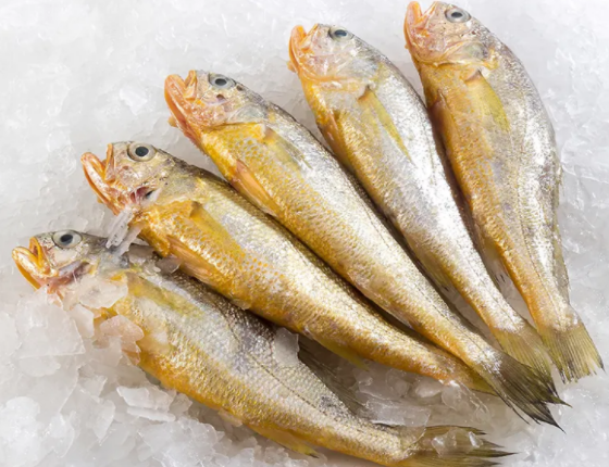2、大黄鱼 大黄鱼又称“黄花鱼”、“黄瓜鱼”,其肉质鲜嫩、蛋白质高、胆固醇低,又披着一身“黄金衣”,寓意吉祥,因而成为霞浦人的餐桌常客。