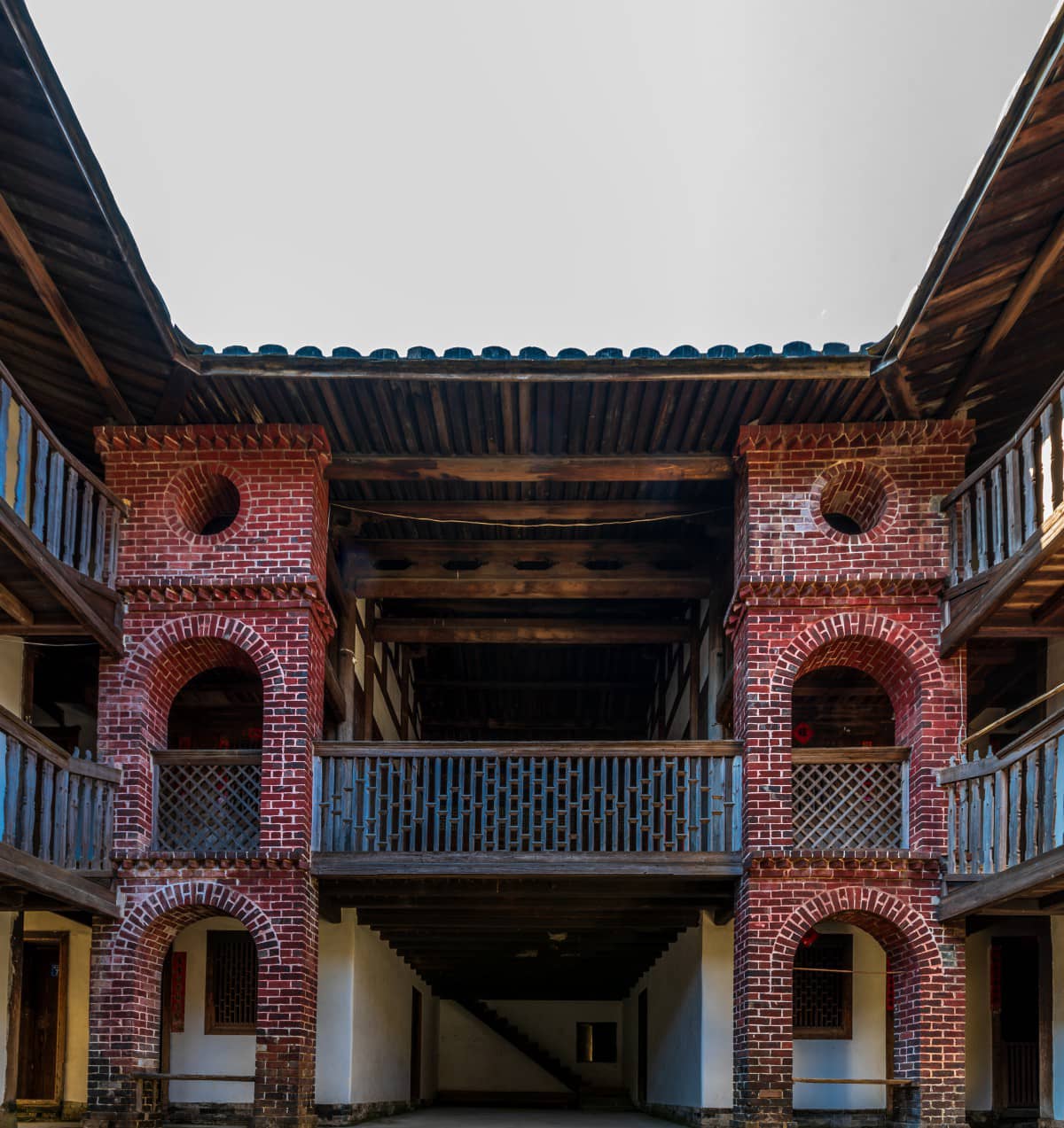 ——枪楼:楼长8米,宽11米,面积约276平方米。原为4层,后因风雨侵毁改为3层,窗户外窄内宽,墙壁设天眼,第2、3层设走廊,每层4间共12间房。