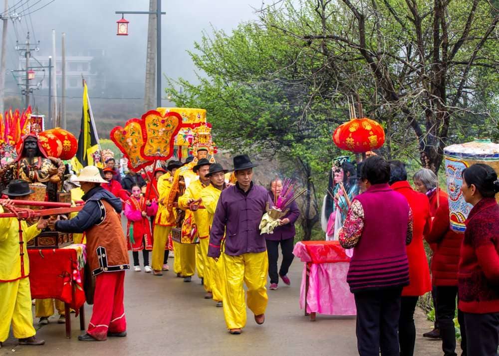 元宵节:每年农历正月十五,村庄信仰妈祖的村民们集聚在天堂宫,年轻的善男信女化戏装参加游神及游灯。