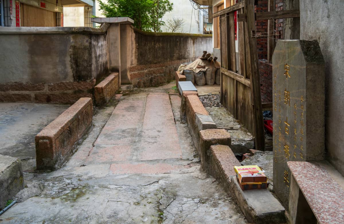 ——林于茂祖厝:始建于明代万历年间,主厝设上、中、下厅三座屋,天井三个,大门前有一对抱鼓石,为当时门房站岗所用。